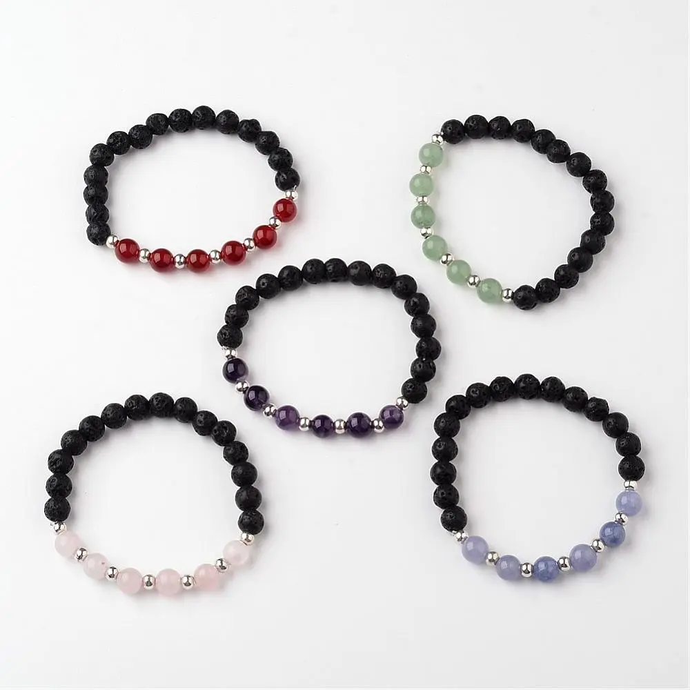 Pulsera de bolitas de piedra volcánica con 7 chakras naturales y sinteticas