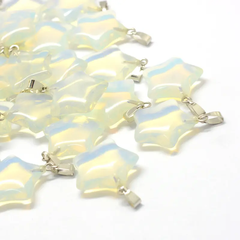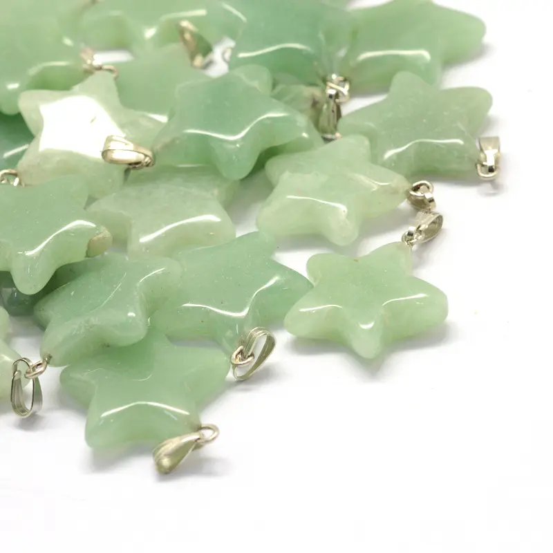Dijes de Cuarzo Verde natural , con broches de presión de acero inoxidable