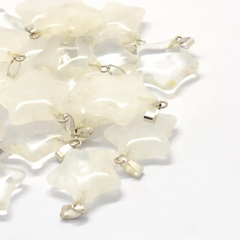 Dijes de Cuarzo Rosa natural , con broches de presión de acero inoxidable
