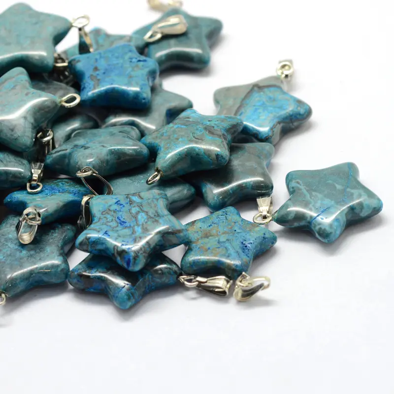 Dijes natural de Aventurina Azul , con broches de presión de acero inoxidable