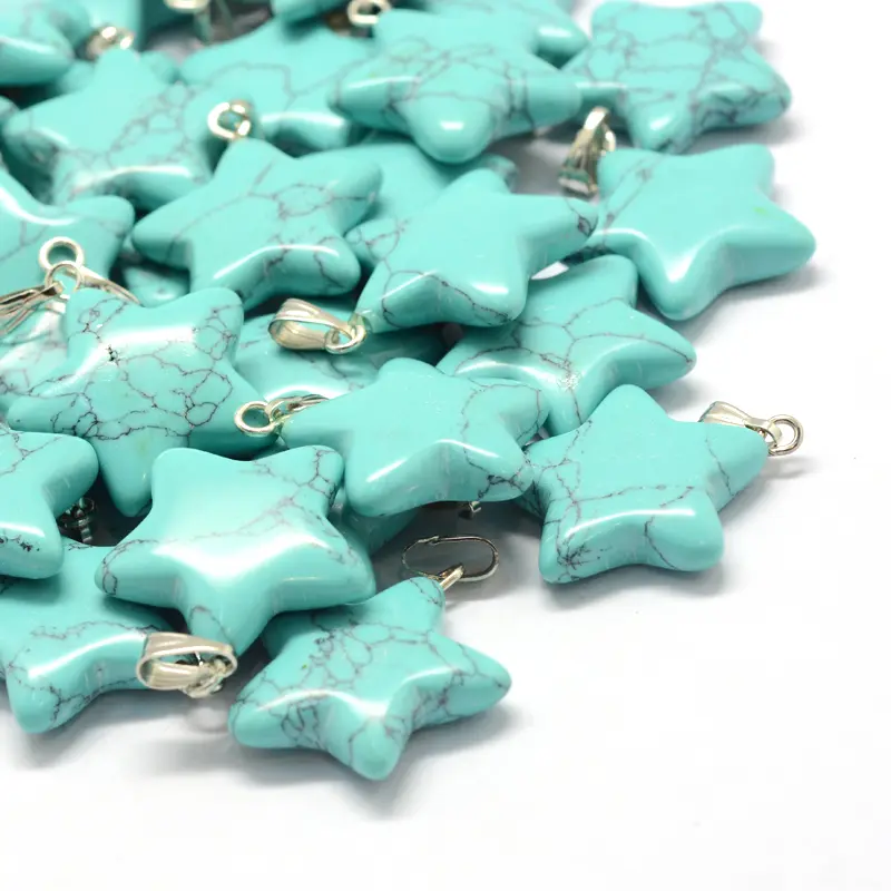 Dije de material sintético Turquesa, con broche de presión de acero inoxidable