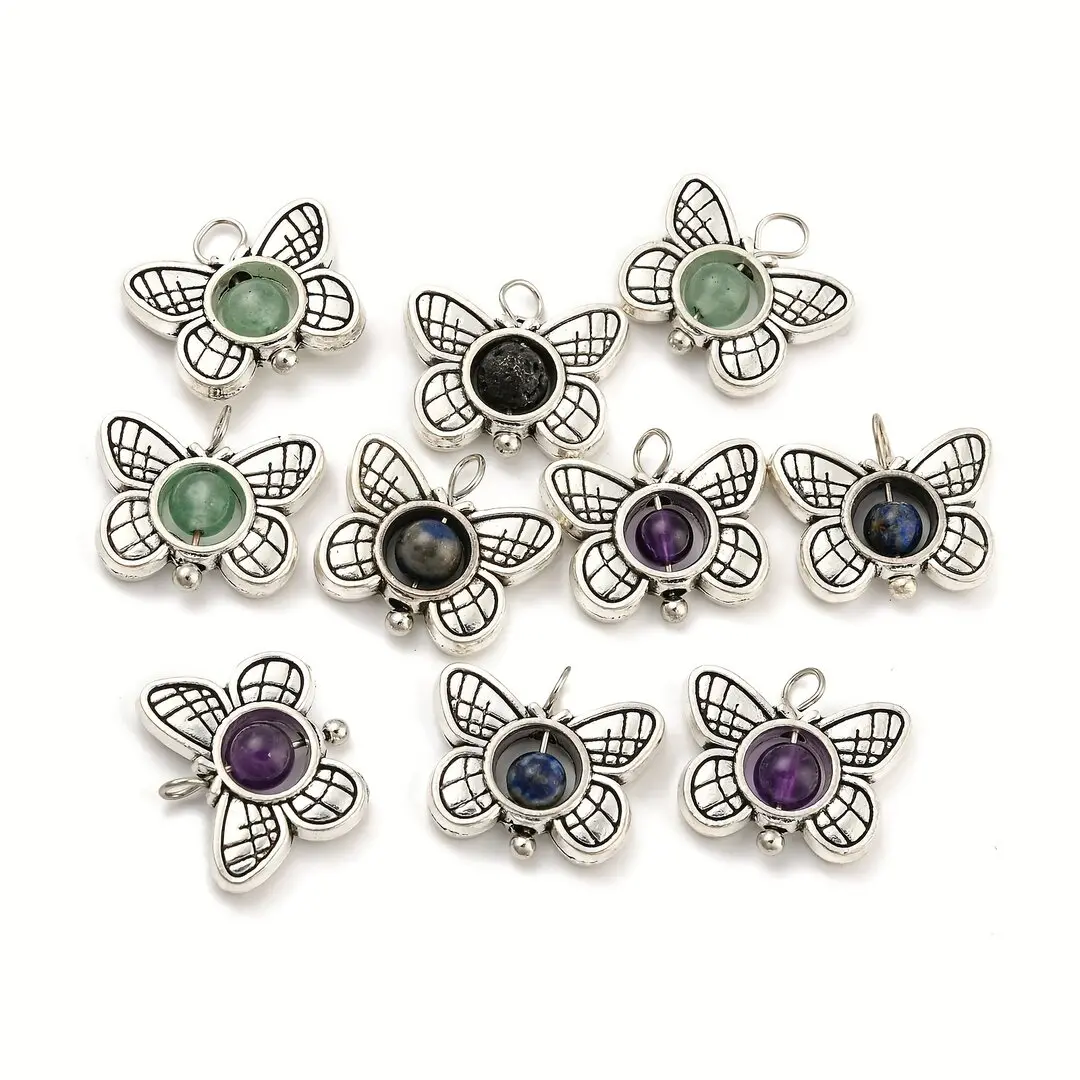 Dije con forma de mariposa con diferentes piedras naturales, con broche de presión de acero inoxidable