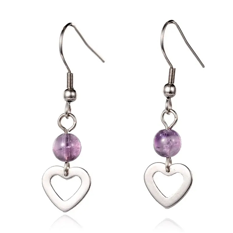 Aros colgantes con piedras naturales y corazón plateado