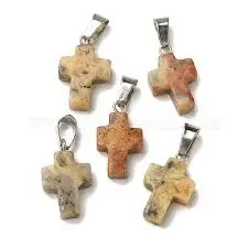 Dijes de Jaspe Rojo naturales, con broches de presión de acero inoxidable