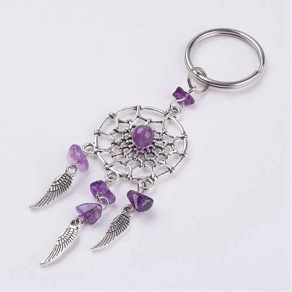Anillos de latón bañado en plata con piedra de amatista natural, tamaño surtido del nro 17 al nro 20